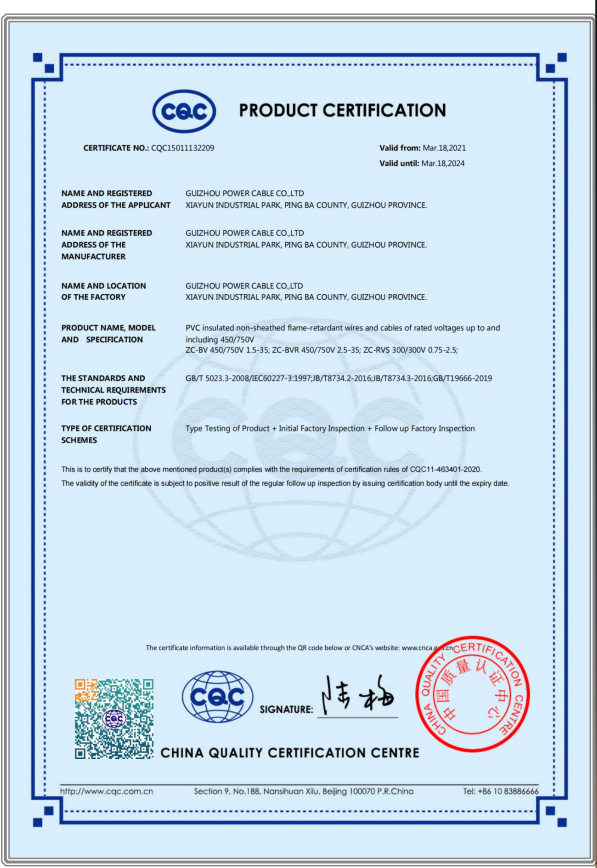 CQC產(chǎn)品認(rèn)證證書(shū)